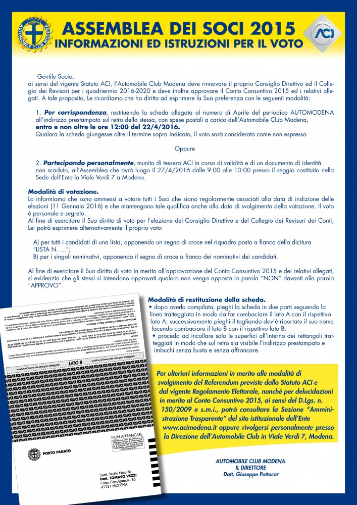 ASSEMBLEA DEI SOCI 2015 - INFORMAZIONI ED ISTRUZIONI PER IL VOTO