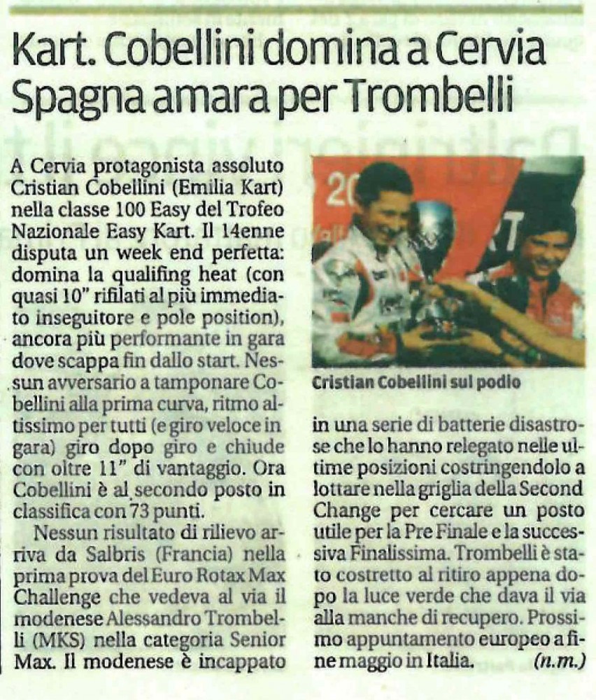Kart Cobellini domina a Cervia - Spagna amara per Trombelli