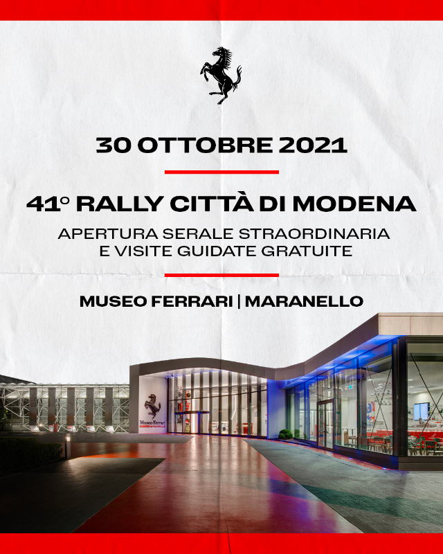 In occasione del 41° Rally Città di Modena, il #MuseoFerrari di Maranello resterà aperto fino alle 22:00